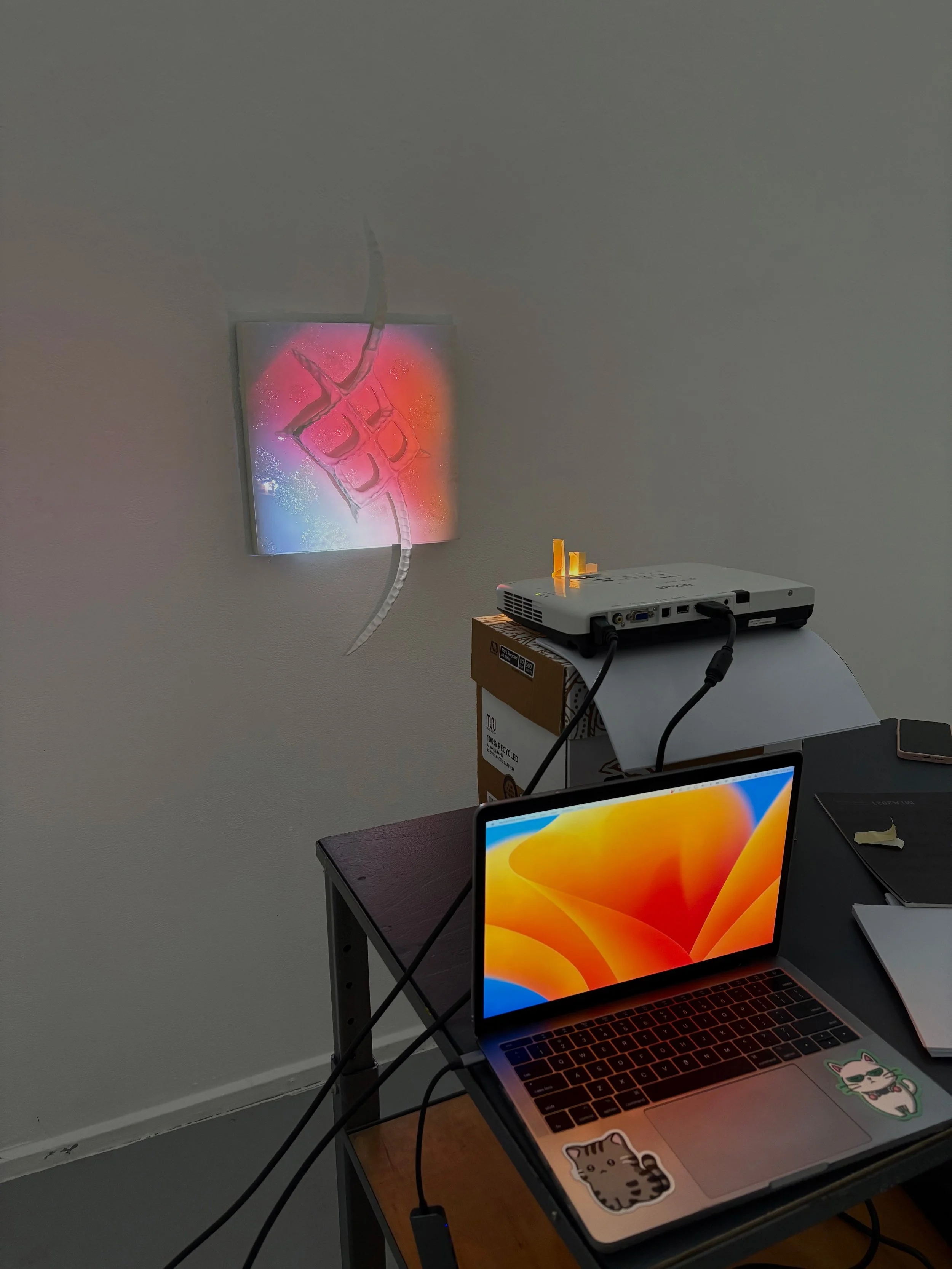 Due to my laptop’s limited capacity for 3D modelling, I shifted to After Effects for 2D animation. Using online tutorials and self-directed exploration, I created animation using colors and abstract shapes to express different kinds of pain I experienced in my body. I first produced a short animation, using a projection borrowed from friends and trialed the projection on a wall to assess feasibility. The test worked well, so I proceeded to create the full 40 seconds animation.