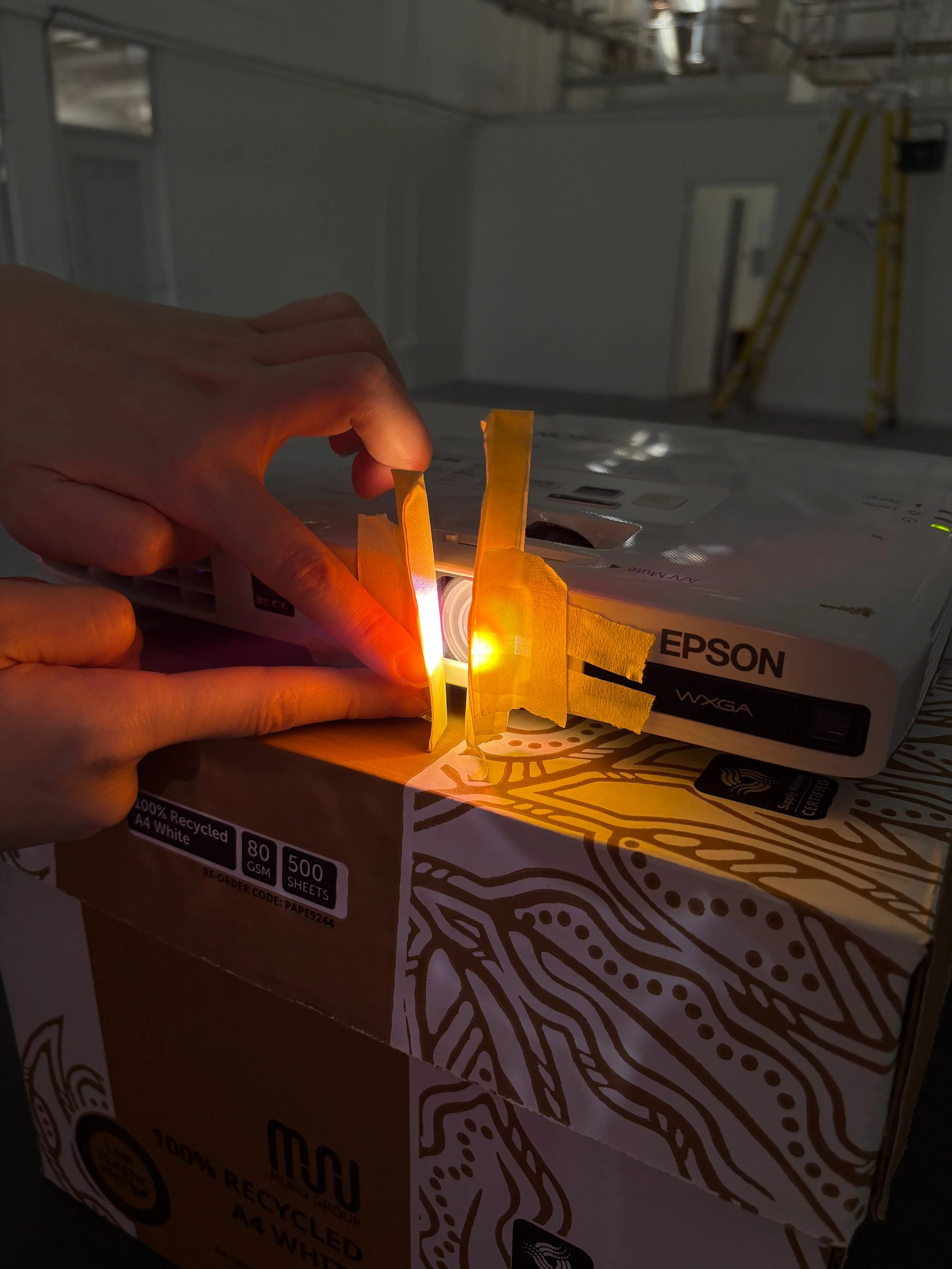I noticed a difference between seeing the projection with my eyes and recording it on camera. The camera often shifts colour and lowers saturation. In future projects, I will learn more filming settings to better reproduce the animation. I also learnt that animation needs more editing and render time than I expected, so I will plan a longer timeline for animation next time.